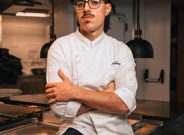 Nicoló, 25 anni, Torinese di nascita ha deciso di intraprendere il suo sogno nel cuore della Valle D’Aosta. Ex promessa del calcio, decise di mollare tutto per seguire la sua passione culinaria. Nicoló ha iniziato il suo percorso tra i fornelli giovanissimo a soli 14 anni, trasformando ogni esperienza in una crescita professionale affinando la sua capacità di unire amore, tradizione e innovazione in un esperienza culinaria unica nel suo genere!